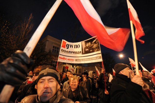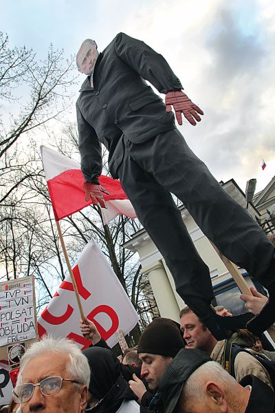 Pod koniec demonstracji pod ambasadą spalono kukłę przedstawiającą Putina, krzycząc przy tym ‘Morderca!’, zaś chwilę później tłum skandował: ‘Teraz Tusk!’.