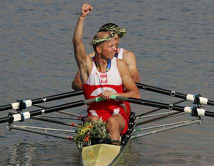 Tak. Cudna chwila. Jedyna w swoim rodzaju. Nogi jak z galarety. Myślałem, że się zaraz przewrócę. Ciepło i zimno. Niesamowite myśli przelatują przez głowę. Niesamowita radość. Wyobrażałem sobie radość tylu ludzi, którzy cieszą się razem ze mną. Którzy byli przed telewizorami albo gdzieś na Mazurach, wznosząc toast. Myślałem o swoich rodzicach, o babci i dziadku, którzy są moimi największymi kibicami. Zastanawiałem się wtedy, jak się mam zachowywać. Stoję z tym medalem, grają Mazurka Dąbrowskiego, co mam robić? Podnieść ręce w geście triumfalnym, czy posyłać buziaki? Nie wiedziałem tak naprawdę, co robić. Tyle myśli… I taka radość, taka energia przede wszystkim.