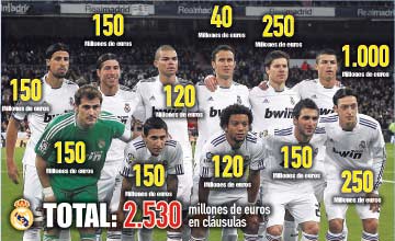 Ale dość o pogodzie. Zacznę od 4 mld euro na boisku. Tak wyliczył kataloński Sport sumując tak zwane kwoty odejścia w podstawowych jedenastkach obu drużyn. Z ciekawostek – najniższą kwotę ma Puyol, zaledwie 10 mln euro. Szokująca jest różnica między Messim i Ronaldo. Portugalczyk jest aż cztery razy droższy! Argentyńczyk ma zapisaną w kontrakcie z Barcą ‘zaledwie’ 250 mln, tyle co Mesut Ozil i Xabi Alonso w Realu. Xaviego Hernandeza można mieć już za 80 mln euro. Gdyby porównać wartość obu drużyn za pomocą tych kwot, Real jest prawie dwa razy droższy.