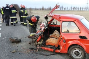 Młody mężczyzna kierujący fiatem zginął na miejscu. Ruch na tym odcinku kilka godzin był całkowicie zablokowany. Trzy zastępy straży pożarnej usuwały kilka ton żwiru, który wysypał się na jezdnię i pobocze.