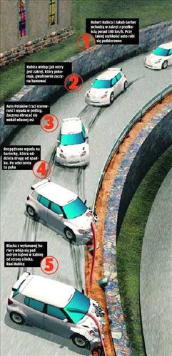 26-letni Kubica doznał w niedzielę poważnych obrażeń w wypadku na trasie rajdu samochodowego Ronde di Andora w Ligurii. Prowadzona przez niego Skoda Fabia S2000 wypadła z trasy i z dużą prędkością uderzyła w barierkę otaczającą drogę.