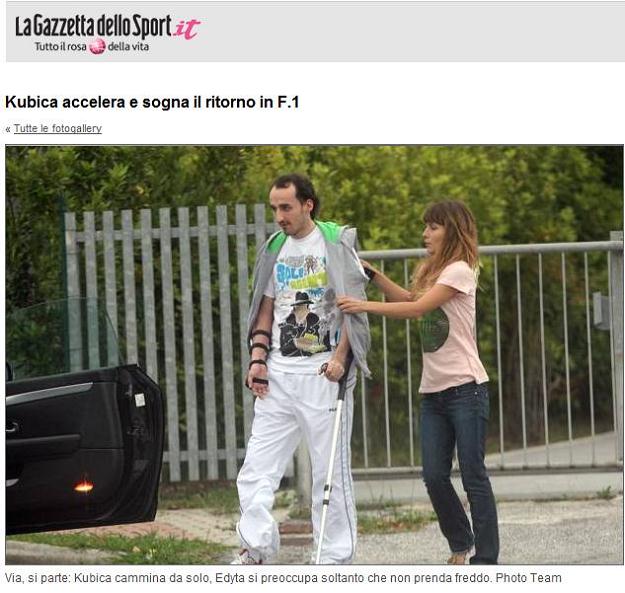 Nikogo nie interesują zdjęcia czy filmy rozbitego samochodu. Nikt nie pyta, dlaczego Kubica pojechał w regionalnym rajdzie. Nikt nie prosi o kontakt z jego rodzicami i najbliższymi. Nikt nie zadaje pytań, dlaczego Polak otrzymał pozwolenie na starty w rajdach, nie mówiąc już o poddawaniu w wątpliwość takiego pozwolenia. Poprzestają na pytaniach o stan zdrowia kierowcy i życzą mu szybkiego powrotu – w pierwszej kolejności do pełni formy, a dopiero później na tor. Daje się odczuć prawdziwe, szczere współczucie dla człowieka, który swoją postawą na torze i poza nim może służyć za wzorzec dla wielu innych zawodników.