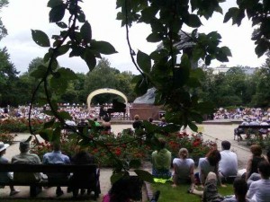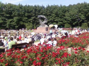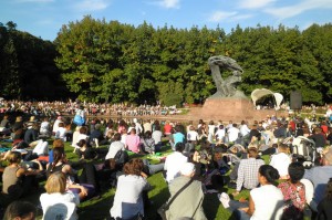 Nieprzerwanie od 1959 r. w Łazienkach Królewskich odbywają się koncerty chopinowskie. To jedna z najciekawszych propozycji kulturalnych stolicy. Spotkania z muzyką wybitnego kompozytora odbywają się w każdą niedzielę od maja do września, o godz. 12 i 16. Podczas nich można wysłuchać recitali wielu znanych pianistów, m.in. laureatów i uczestników międzynarodowych konkursów. Nigdzie też chyba na świecie nie ma takiej atmosfery, z choćby ptakami na pomniku Chopina i okolicznych drzewach.
