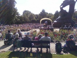 Bardzo dużo ludzi przychodzi na Koncerty Chopinowskie. To cieszy. Co prawda czasem zdarzają się jacyś wariaci, jak na przykład kobieta która w trakcie gry pianisty rozłożyła się jak długa na plecy i jeszcze gołą nogę /w dodatku jeszcze niezbyt ładną/ podnosiła do góry… Tak żeby wszyscy widzieli jej brzydką nogę… Albo ostatnio jakaś młoda kobieta usiadła tak że siedzący z tyłu poza słuchaniem muzyki mogli też oglądać jej gołą pupę… Ale idiotów i chamów jest na koncertach niewielu, to margines. Na szczęście. Bo ja w ostatnią niedzielę nawet sobie pomyślałem że na Chopina do Łazienek przychodzi przecież elita, przychodzą ludzie z klasą, kultura.