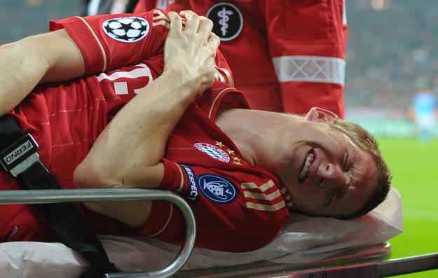 Schweinsteiger uległ poważnej kontuzji na początku drugiej połowy meczu z Napoli. Doszło do niej po starciu ze Szwajcarem tureckiego pochodzenia Gokhan Inlerem. Niemiec z grymasem na twarzy i trzymając się za prawy bark opuścił boisko na noszach