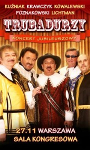 Jestem jednak także pod wielkim wrażeniem występu Trubadurów, którzy wystąpili w drugiej części wieczoru. Krawczyk zaśpiewał z nimi tylko w pierwszej i chyba ostatniej piosence. Zespół założony w 1963 r. zaprezentował się w Sali Kongresowej kapitalnie. Po prostu bomba! Stare pryki śpiewały i grały jak 20-latkowie! Ile w nich wciąż życia, energii! Oczy na wierzch mi wyłaziły jak na nich patrzyłem i ich słuchałem. I tak jest od 45 lat! Co talent, to talent! Wszyscy Trubadurzy są po prostu bardzo utalentowani i tyle. Przecież Piotr Kuźniak to mistrz gitary, a przy tym jak śpiewa! Sławomir Kowalewski i Ryszard Poznakowski też nie są gorsi. Do tego niesamowity perkusista-sportowiec Marian Lichtman, który wyprawia cuda na scenie… Po prostu cyrkowiec.